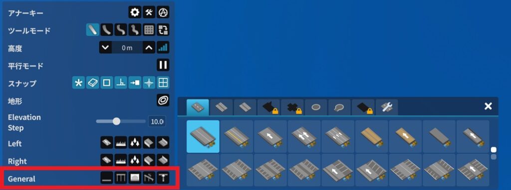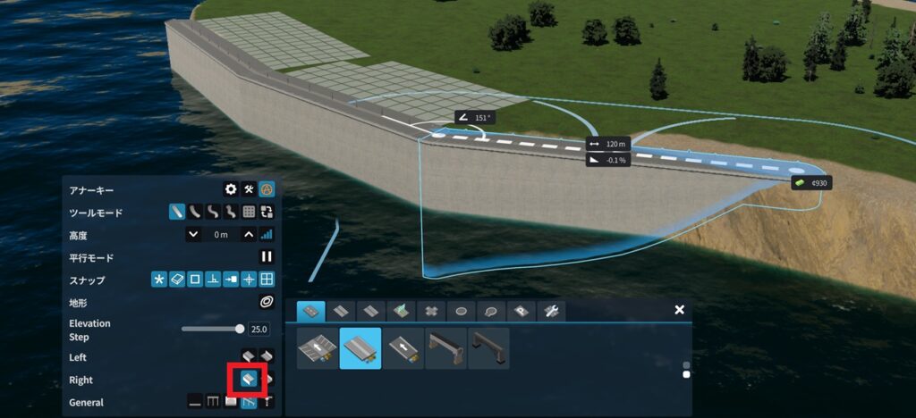 こちらも道路建設時の設定。左側から