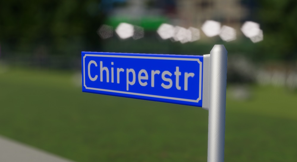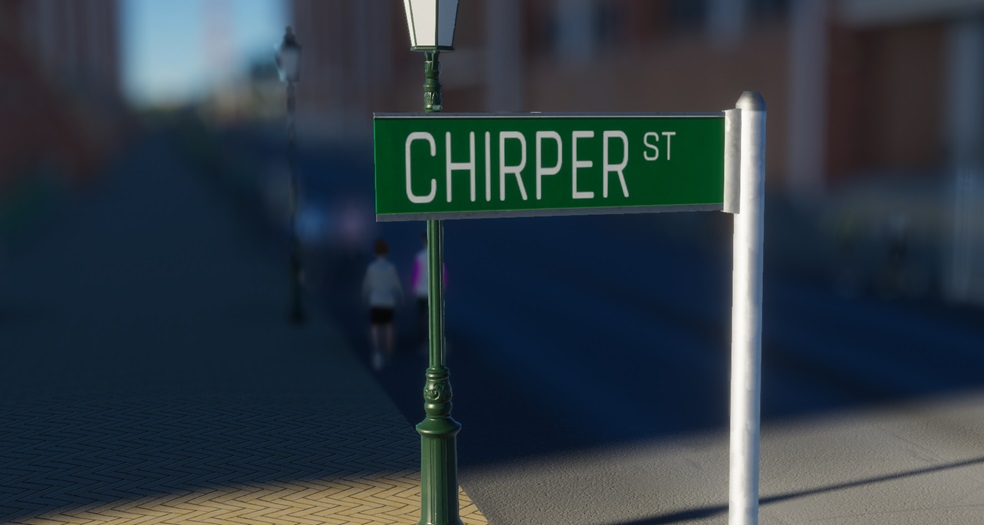 実際の道路名を表示するような機能はなく、全て「CHIPER STREET」を表す標識になっている。CHIPERとは、ゲーム内でのSNS機能である青い鳥のこと。