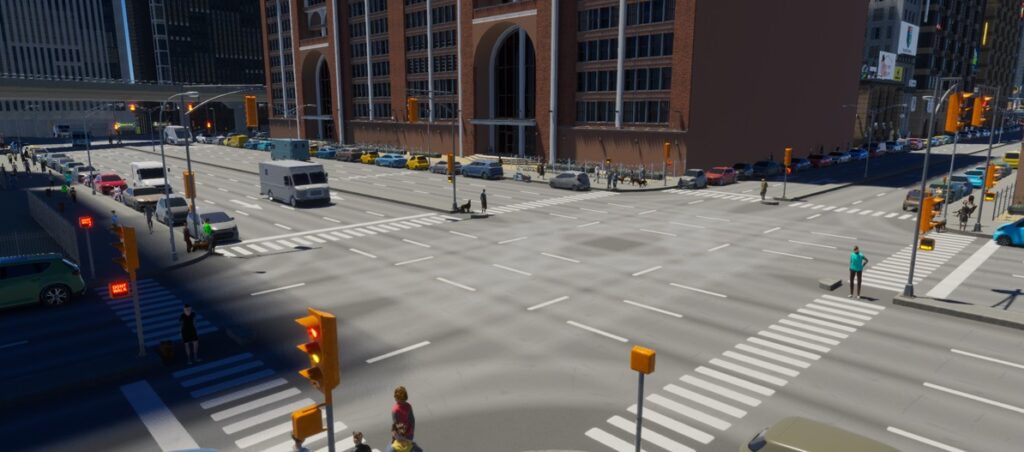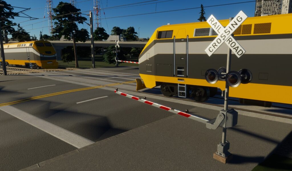 道路と鉄道線路が交差するときに自動で配置される踏切。ちなみに路面電車と道路では踏切が生成されず、地下鉄と道路はそもそも交差することができない。